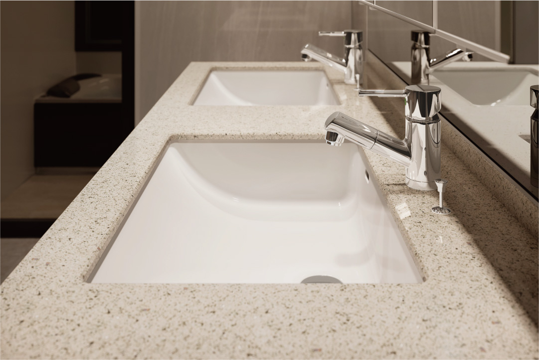 二人同時でもゆとりのある、ホテルライクな洗面化粧台。