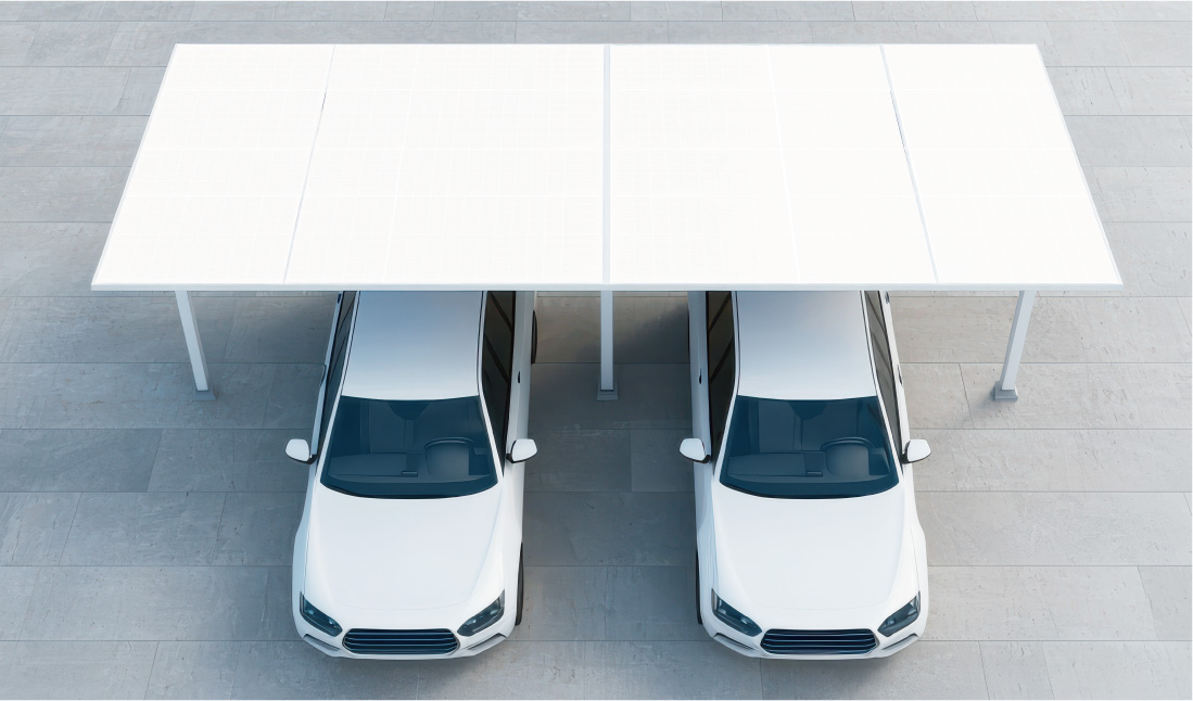 大型セダンやSUVも、ゆとりをもって迎え入れる屋根付きカーポート。