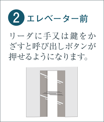 エレベーター内の状況を常に1階のエレベーターホールのモニターに映し出すので犯罪の抑止に効果的です。